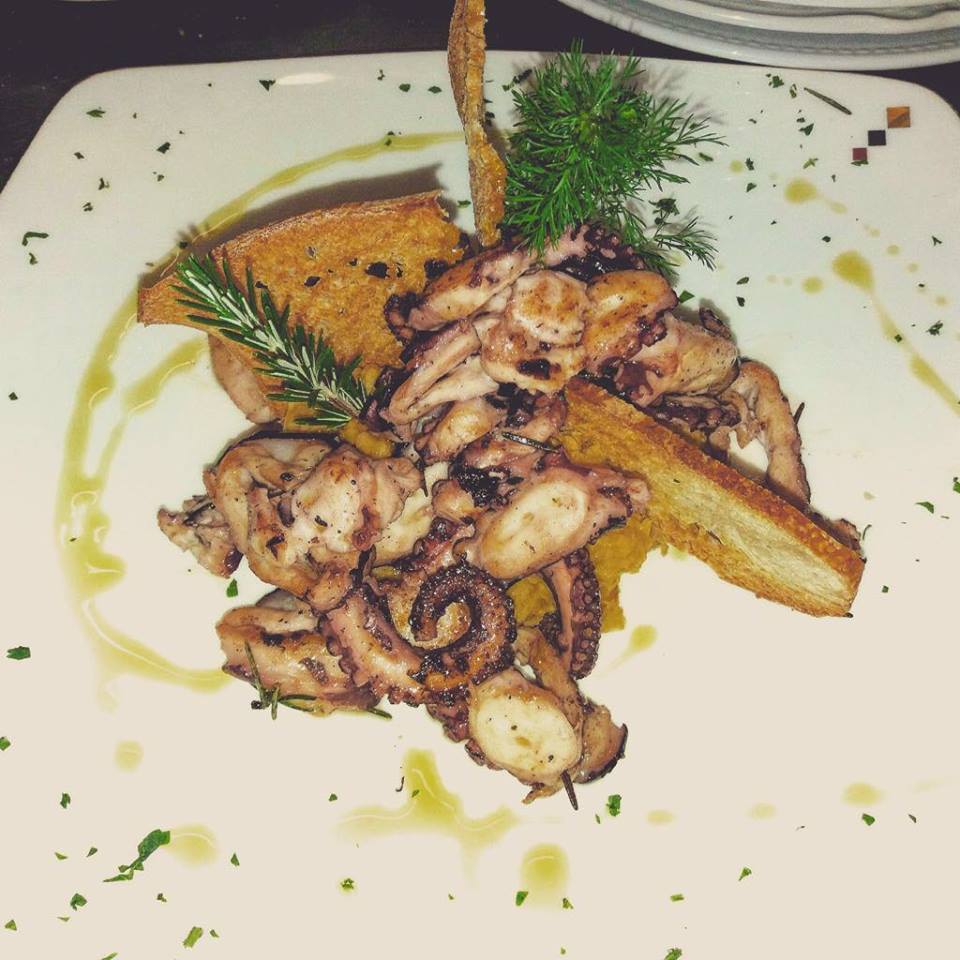 Emulsione di olio, limone e pesce (polpo, gamberetti, seppie e calamari)...